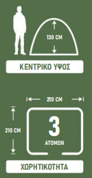 Είναι αδιάβροχη, αντιανεμική 2/3 εποχών, διατίθεται με πασαλάκια στήριξης, σχοινάκια με εντατήρες και τσάντα μεταφοράς με φερμουάρ.
