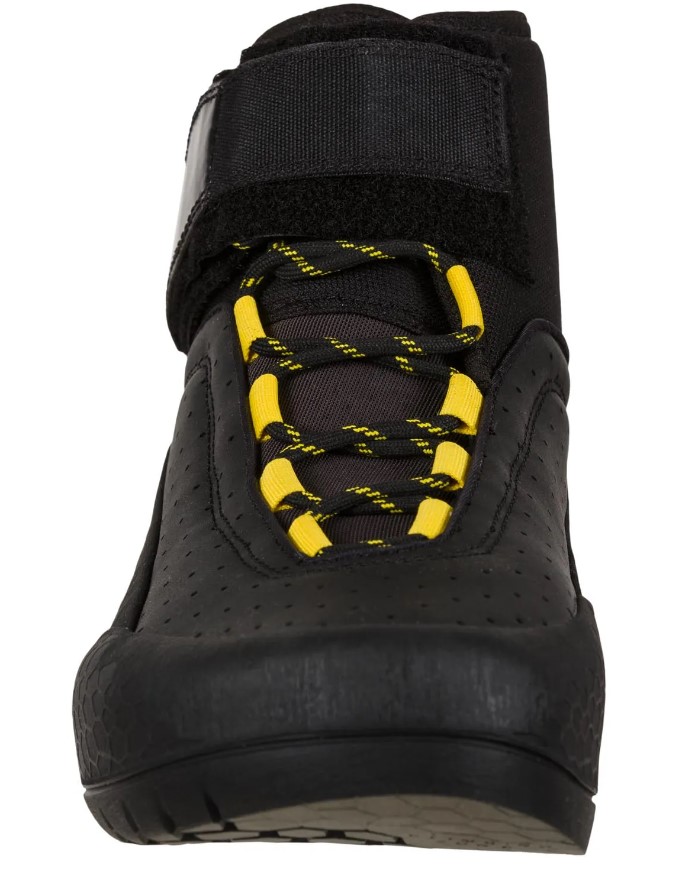 + Spyral Collar: lacing system that hermetically wraps the ankle, isolating it from the entry of external elements. The tension is adjustable through the Tongue-Lock ™ closure strap connected to the internal tongue. The external covering strap allows the maximum reliability of the closure system