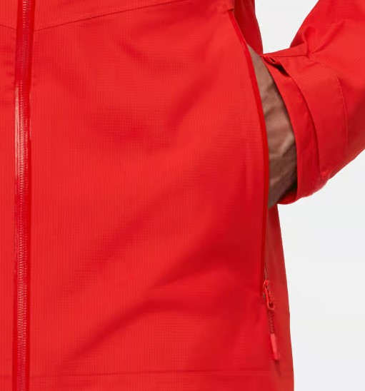 Το πολυστρωματικό υλικό Mammut DRY Tour 2,5 στρώσεων κατασκευασμένο με ανακυκλωμένο πολυεστέρα είναι χωρίς PFC και αδιάβροχο.