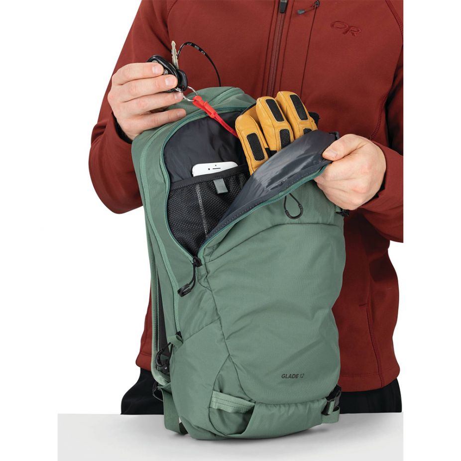 Κρατήστε γυαλιά και μικροαντικείμενα στην μπροστινή τσέπη που σας προσφέρει γρήγορη πρόσβαση. Το Glade 12L είναι κατασκευασμένο με ανθεκτικό εγκεκριμένο bluesign®, 100% ανακυκλωμένο κύριο σώμα και πάτο με επένδυση νάιλον υψηλής αντοχής και επικαλύψεις DWR χωρίς PFAS.