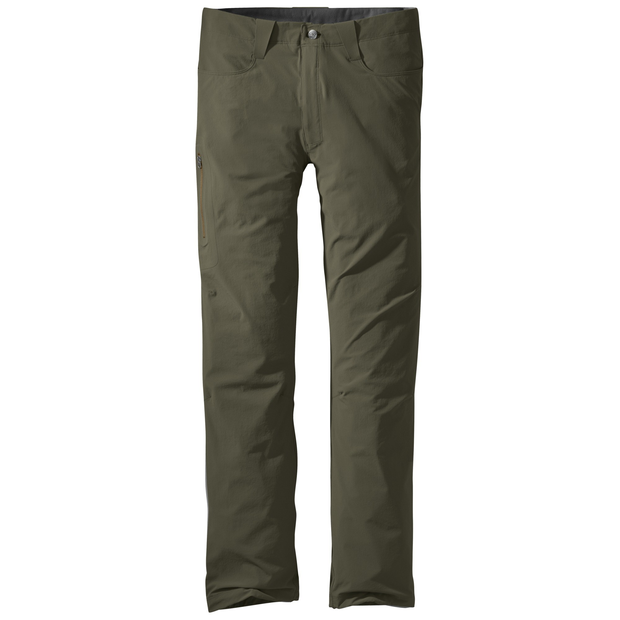- Design Features: Front Slash Pockets, Zip Thigh Pocket, Zip Back Pockets, Brushed Tricot-Lined Waistband, Button and Zipper Fly
