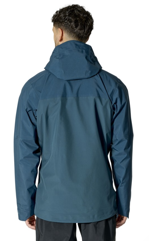 Κατασκευασμένο με ενισχυμένο ύφασμα 80D 3-layer GORE-TEX PRO με καινοτόμο μεμβράνη ePE χωρίς φθοράνθρακες στους ώμους και τα μανίκια για αντοχή στην τριβή, και 40D 3-layer GORE-TEX PRO ανθεκτικό ύφασμα στο κέντρο του σώματος για μεγαλύτερη κινητικότητα, διαπνοή και μειωμένο όγκο.