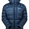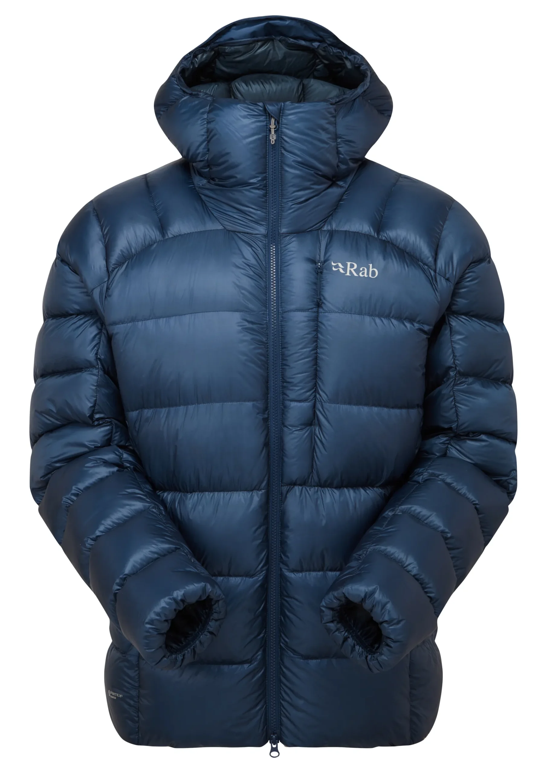 - Helmet compatible down-filled hood with rear elastication, concealed internal adjustment and stiffened peak for increased protection