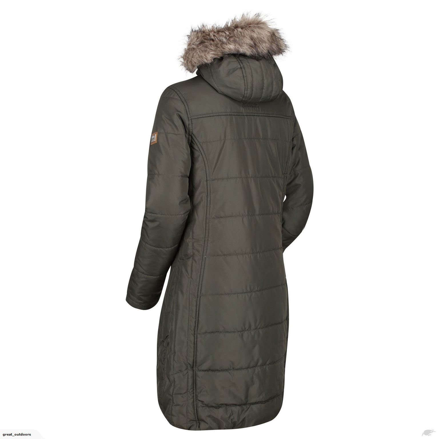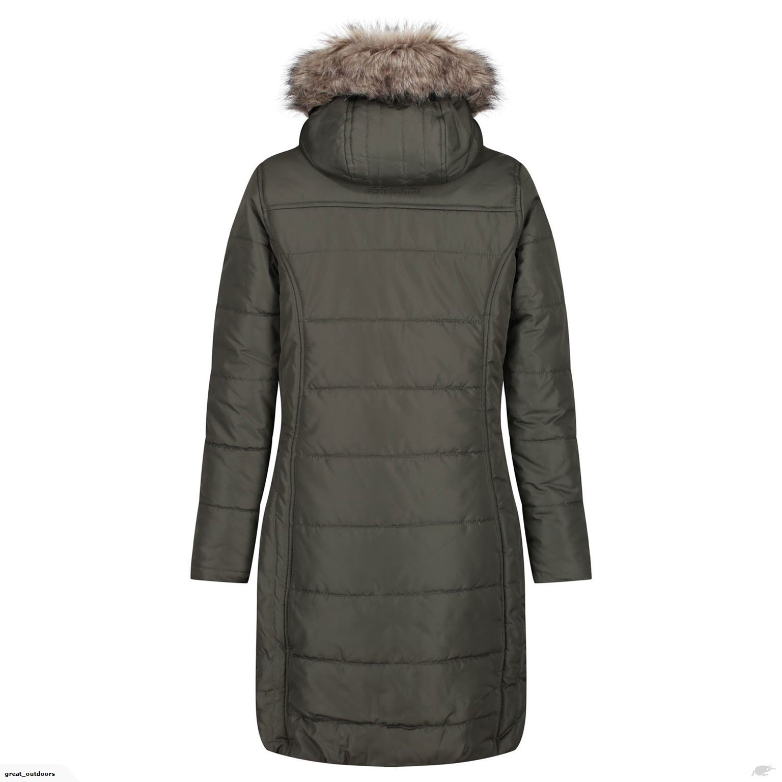 Το μήκος φτάνει ως τους μηρούς, η κουκούλα φέρει μία κομψή γούνα, υπάρχουν 2 πλαινές τσέπες και 1 εσωτερική που κλείνουν με φερμουάρ, ενώ στο αριστερό μανίκι διακρίνεται το σήμα της regatta.