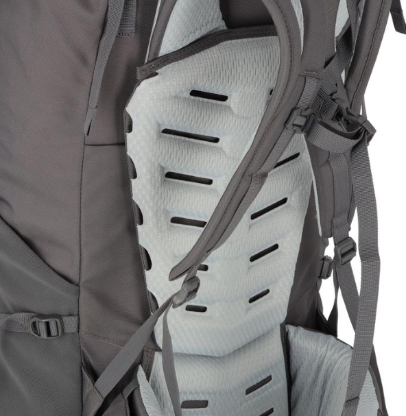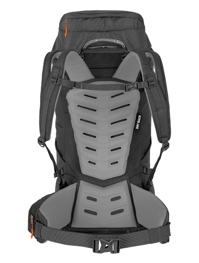 Το σύστημα μεταφοράς Dry Back Custom με εύκολη προσαρμογή έχει ρυθμιζόμενο μήκος πλάτης και ιμάντες ώμου με ανατομικό σχήμα, οσφυϊκή υποστήριξη και ζώνη ισχίου για εξατομικευμένη εφαρμογή. Επιπλέον, οι ιμάντες ανύψωσης φορτίου εξασφαλίζουν βέλτιστη εφαρμογή στην πλάτη σε μεγάλες αποστάσεις, ενώ το προδιαμορφωμένο ισχίο εγγυάται άνετη εφαρμογή και καλή μεταφορά φορτίου στους γοφούς σας. Η ελαφριά κατασκευή του βοηθά να κρατήσετε το βάρος χαμηλά. Και το σύστημα Dry Back με το γεμισμένο πίσω πάνελ EVA και τα κανάλια αερισμού 3D προωθεί την καλή ροή αέρα και αναπνοή στο πίσω μέρος όλες τις εποχές, ενώ οι διαχωρισμένοι ιμάντες ώμου εξακολουθούν να επιτρέπουν μεγάλη ελευθερία κινήσεων για ένα τόσο μεγάλο σακίδιο.