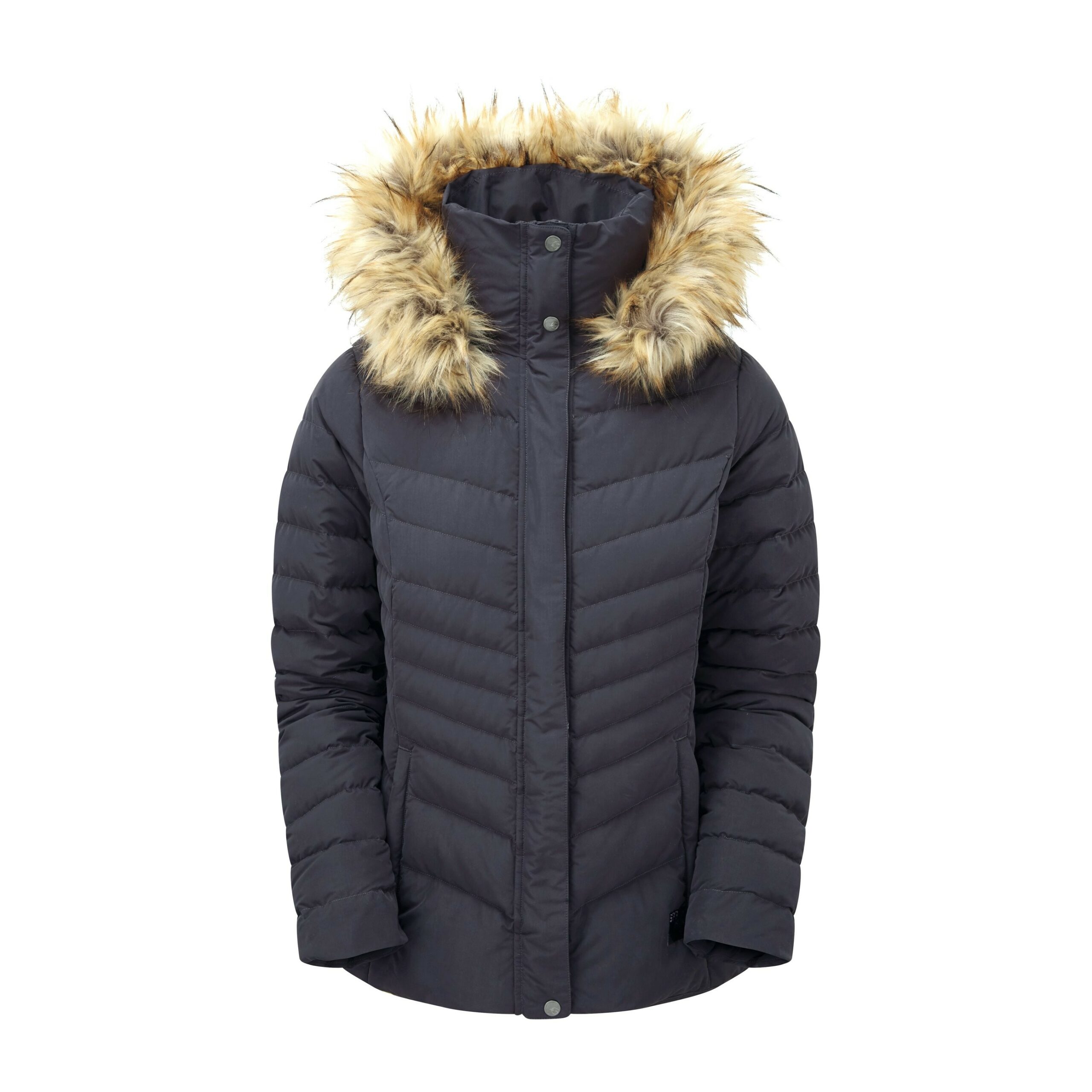 - Grown on, fleece lined hood with removable faux fur trim
