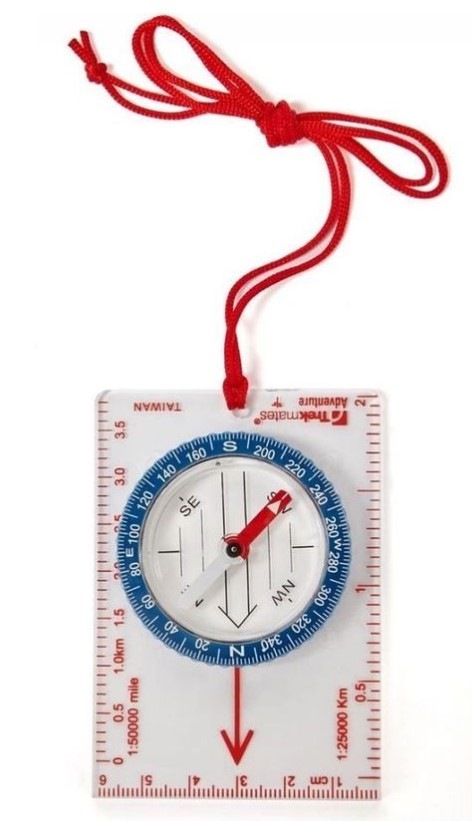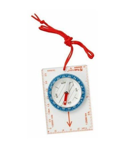 Μια ελαφριά και συμπαγής, κλασική πυξίδα βάσης με περιστρεφόμενη στεφάνη με διαβαθμίσεις καντράν δύο μοιρών, βρίσκεται πάντα στη συσκευασία μας σε περίπτωση που τη χρειαστούμε.