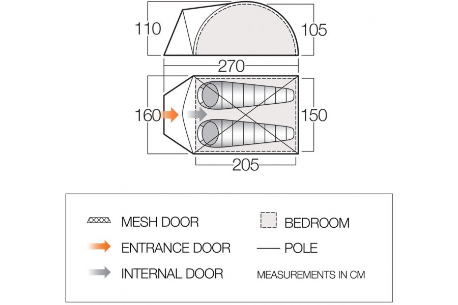 - Protex® 70 Denier Polyester Flysheet, 3000mm HH – Highly waterproof, durable and reliable fabric, exclusive to Vango