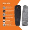 - 20D 380T Nylon Ripstop Fabric – Extremely lightweight and durable construction applied to the top and bottom of the mat, making it ideal for those that require long lasting and lightweight trekking equipment