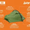 - TBSII – Unique to Vango tents, our Tension Band System creates a triangulated shape inside the tent to brace against strong and changeable winds and reduce sideways deformation. TBSII is easy to adjust and can be securely stowed when not in use.