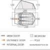 • Part Mesh Inner Door – Allows ventilation, while keeping bugs out