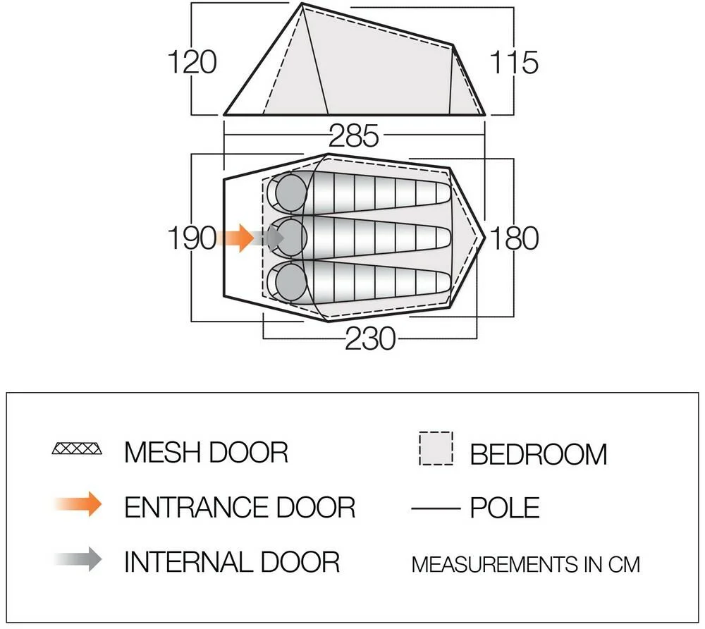• Protex 70 Denier Polyester Flysheet, 3000mm HH – Highly waterproof, durable and reliable fabric, exclusive to Vango