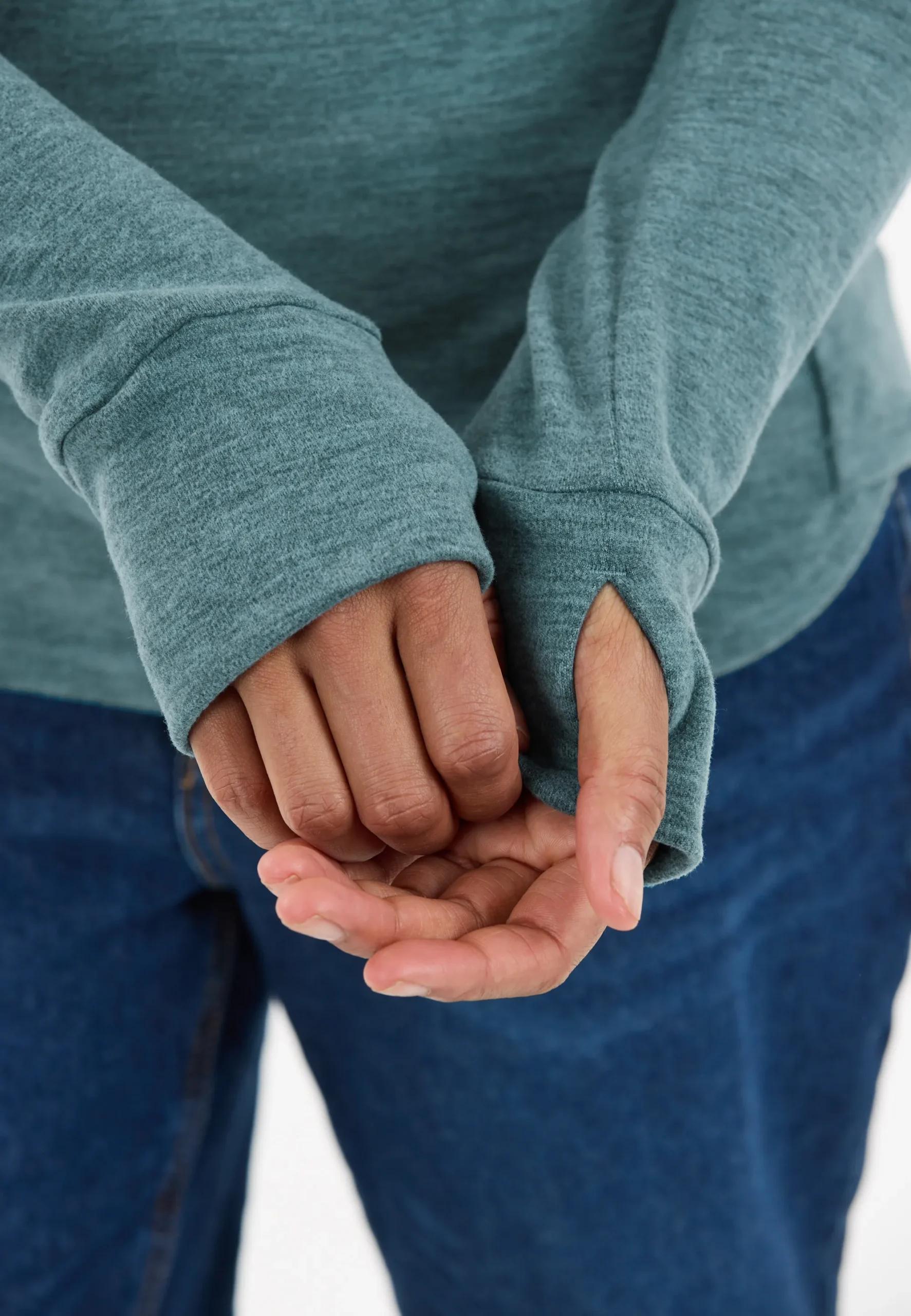 Είναι κατασκευασμένο από 92% πολυεστέρα και 8% ελαστάνη και ξεχωρίζει για την αναπνεύσιμη και ζεστή του ποιότητα, που σας προσφέρει άνεση όλη την ημέρα. Οι θηλιές για τους αντίχειρες εξασφαλίζουν ότι τα μανίκια παραμένουν στη θέση τους και το midlayer κάθεται άνετα.
