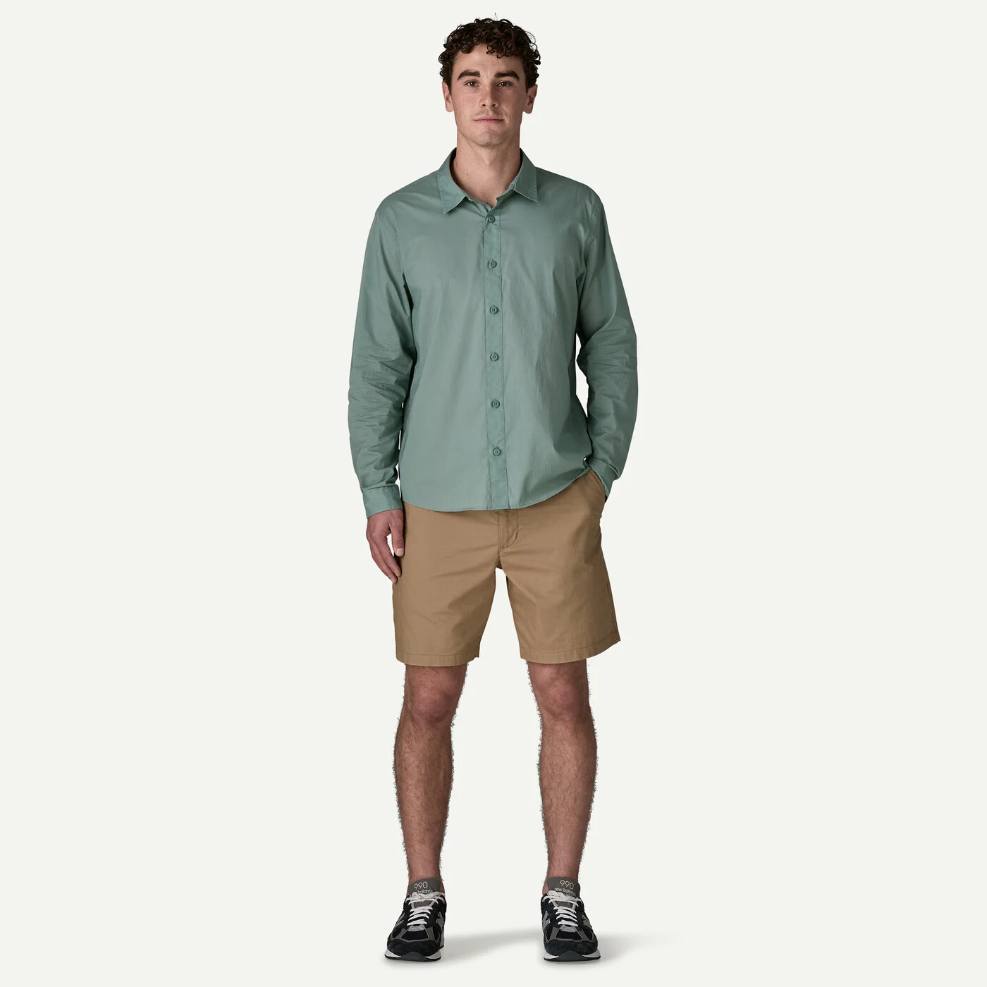 Turned-down collar, long sleeves and button-closure cuffs make for a casual, ready-for-anything aesthetic